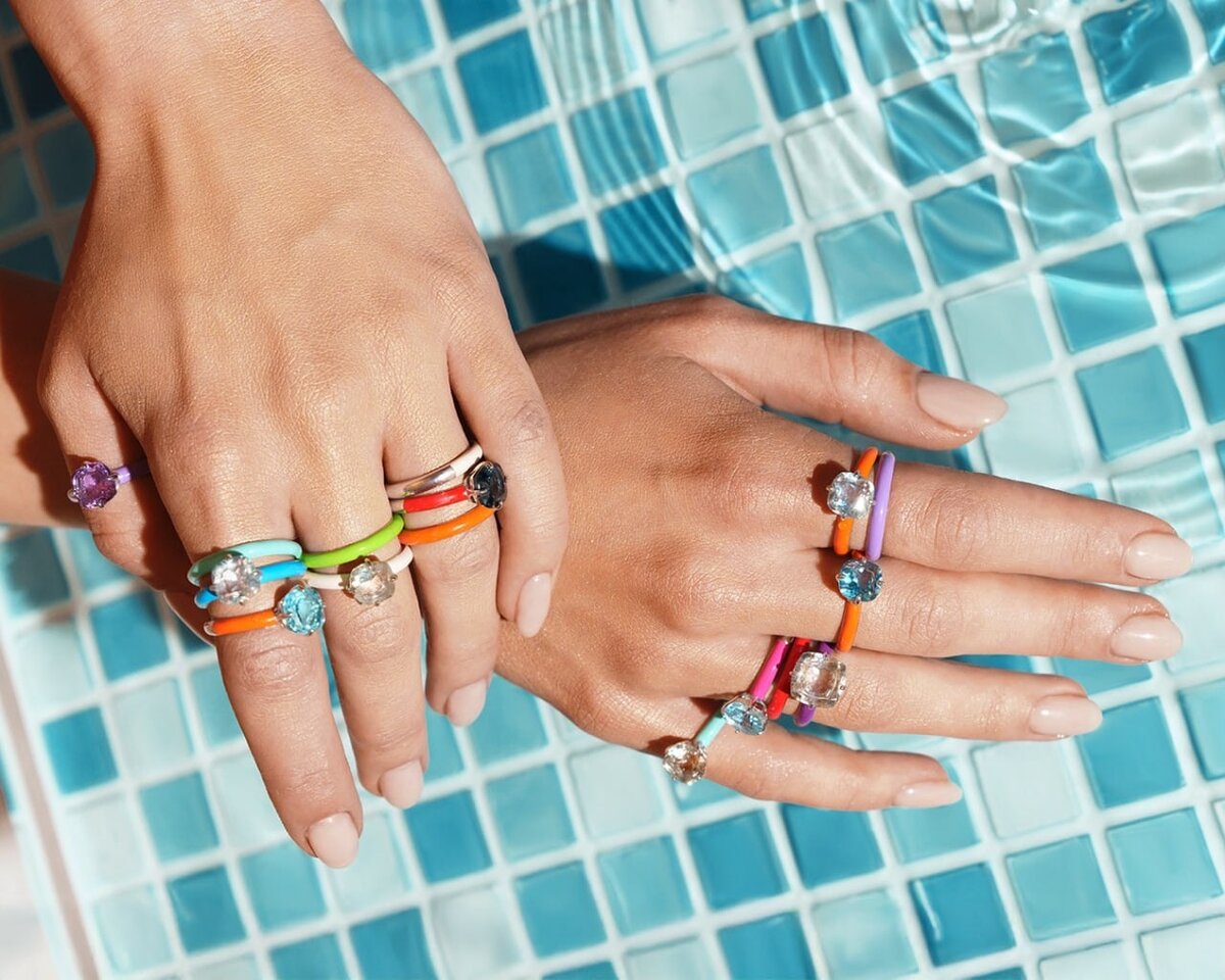Тренд отражён в коллекциях Пантон и Конфетти от «Бронницкий Ювелир»: здесь цвет — главный элемент украшения.